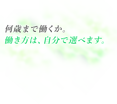 これは、80歳まで会社に縛り付けて働いてもらう、ということではありません。65歳以降は自分の体力やライフスタイルに合わせて働き方を選択する事も可能です。